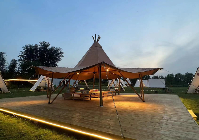 此區(qū)塊位于規(guī)劃地塊的東北角濱水區(qū)塊,該區(qū)塊項(xiàng)目設(shè)計(jì)意在配合度假酒店,加載精品化的休閑度假項(xiàng)目,打造精品度假體驗(yàn)。其主要內(nèi)設(shè)項(xiàng)目包括垂釣俱樂部、房車營地、篝火廣場、精品帳篷酒店、帳篷餐廳和露天燒烤園等等